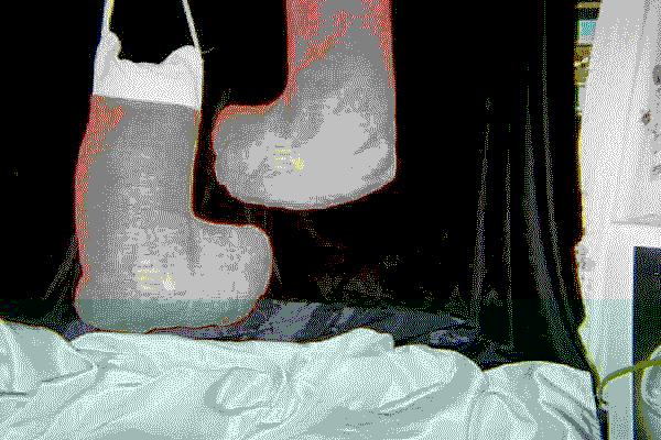 Christmas Stockings of Hemp - red and white, strap long enough to use as purse, zipper top $85.00